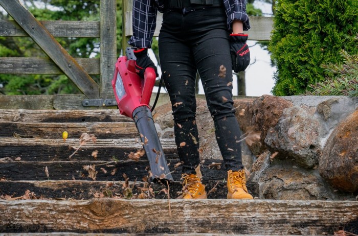 A battery powered blower with strong performance, unique battery holder belt and two nozzles to make light work of all the blowing and tidying around the yard or on the job.